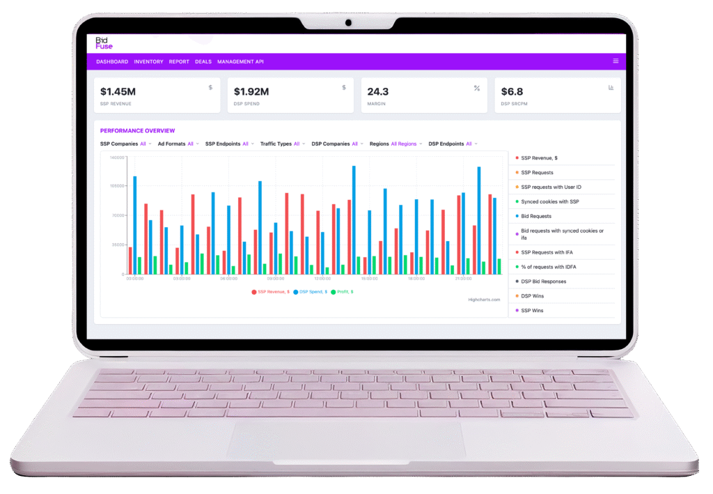Built for flexibility, BidPulse supports SDK, OpenRTB, Prebid, VAST, and JavaScript tag integrations, allowing frictionless deployment across any mediation layer, custom ad server, or in-house monetization framework.